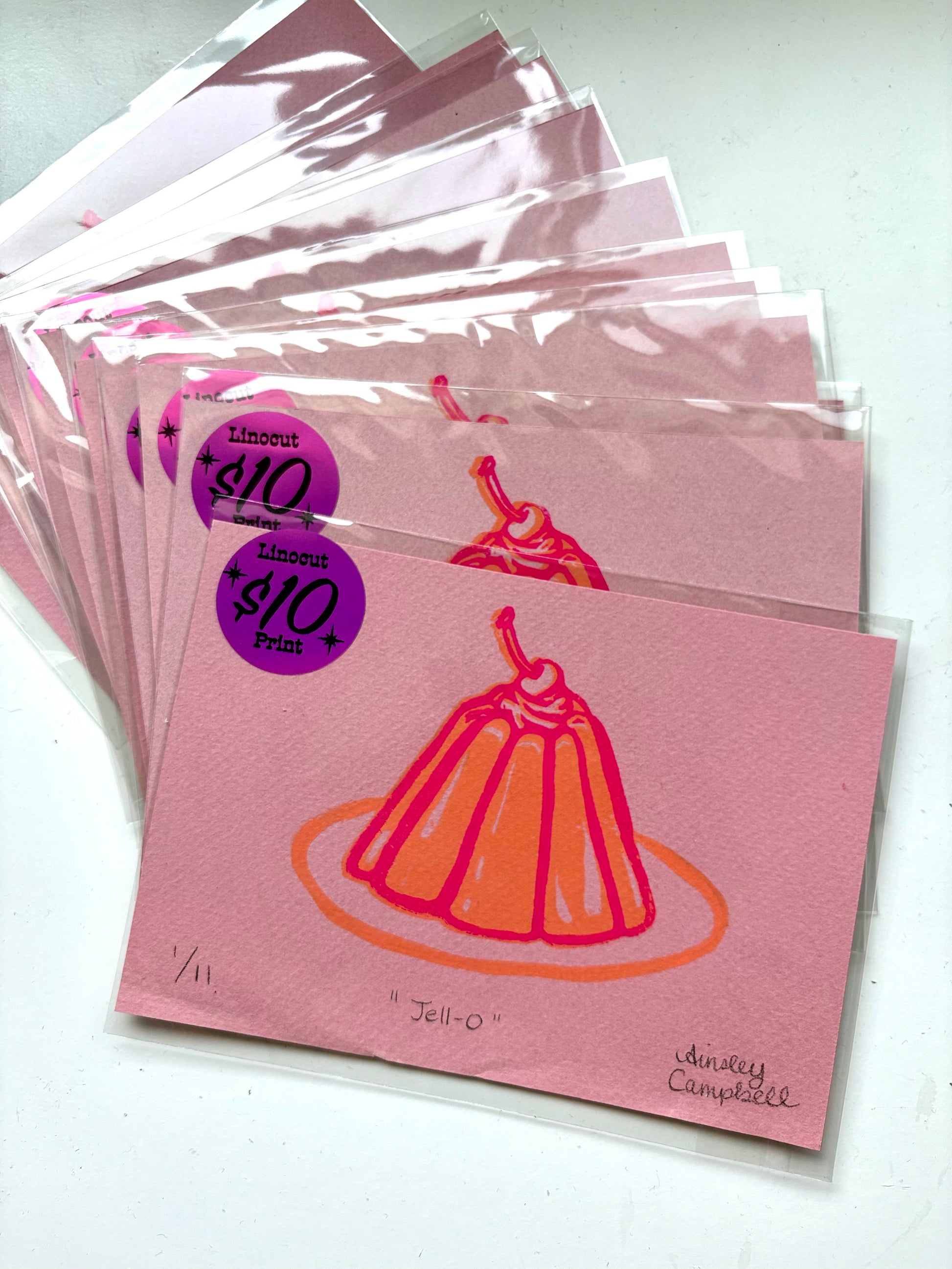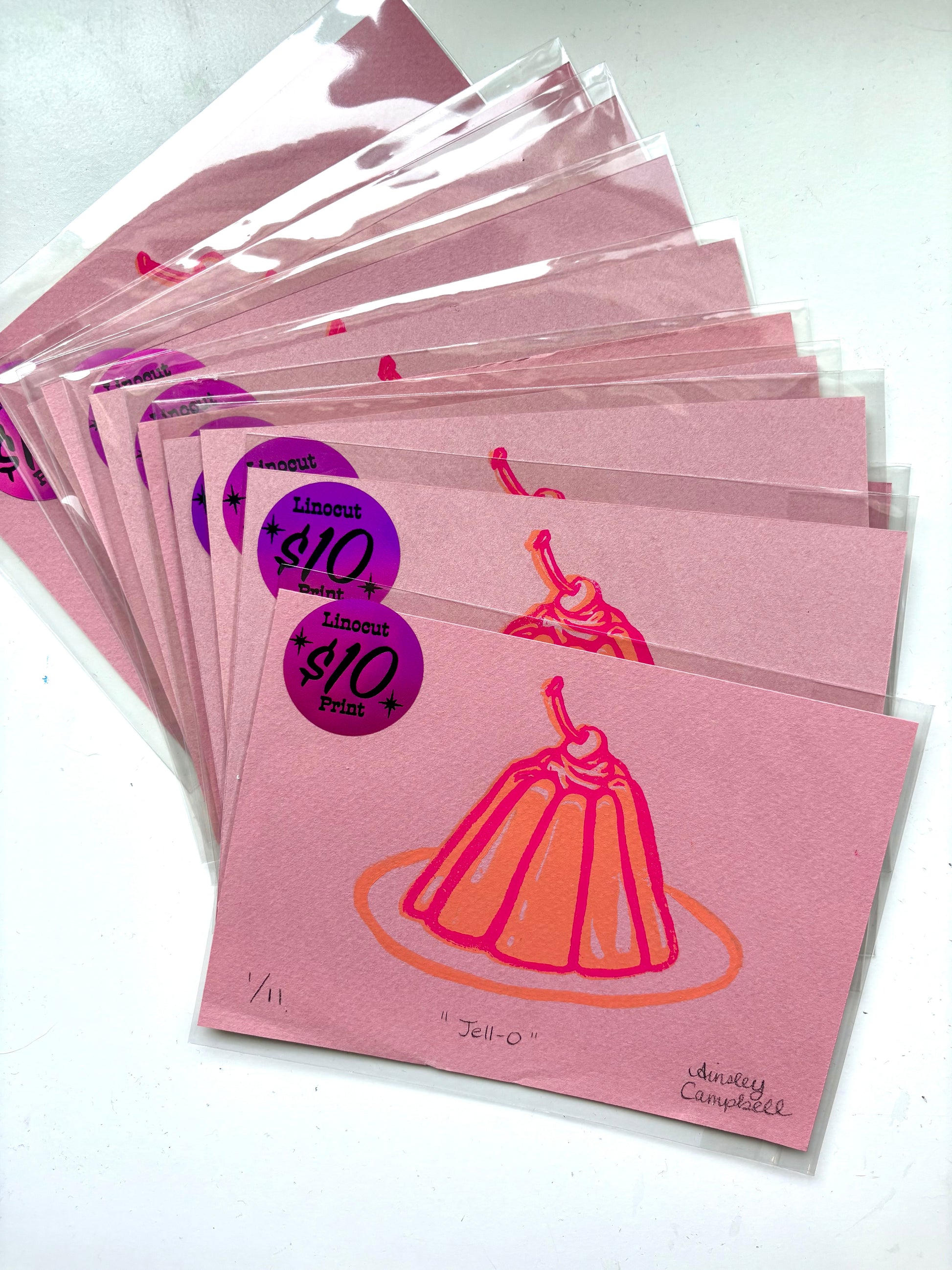 "Jell-O" linocut print - pink paper